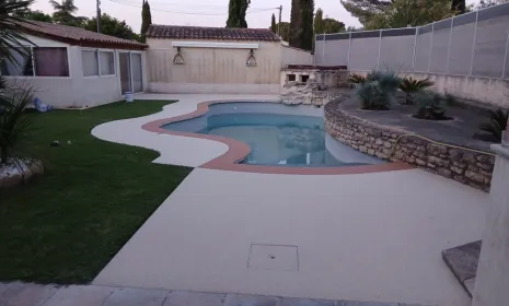 - Pose de Marbreline pour terrasses, allées et plages de piscine