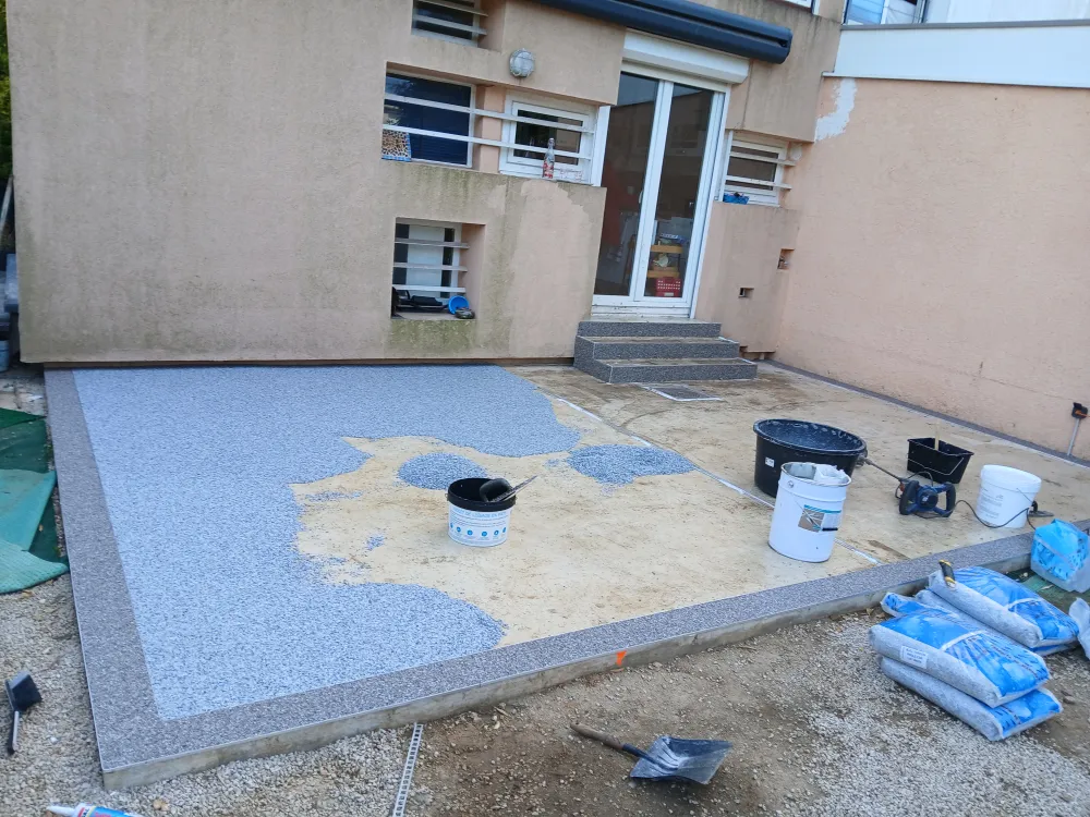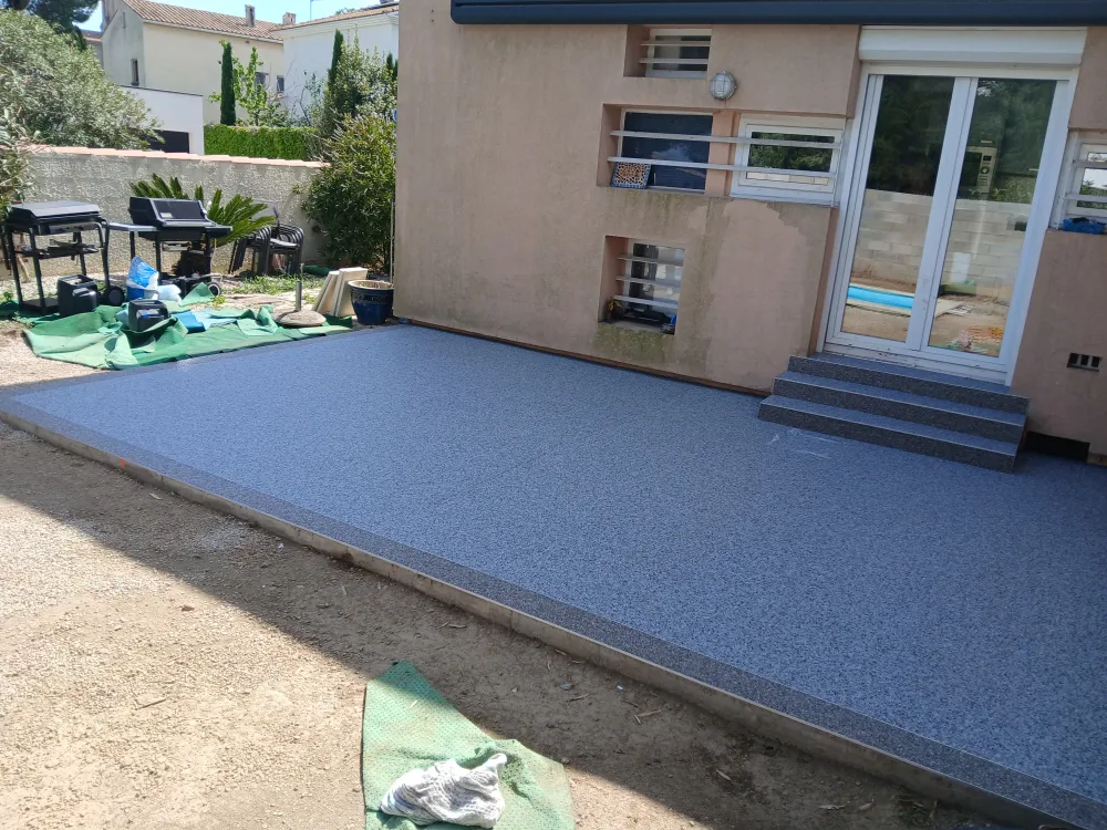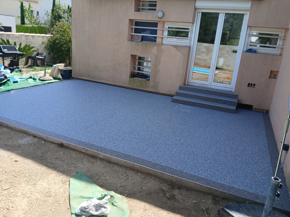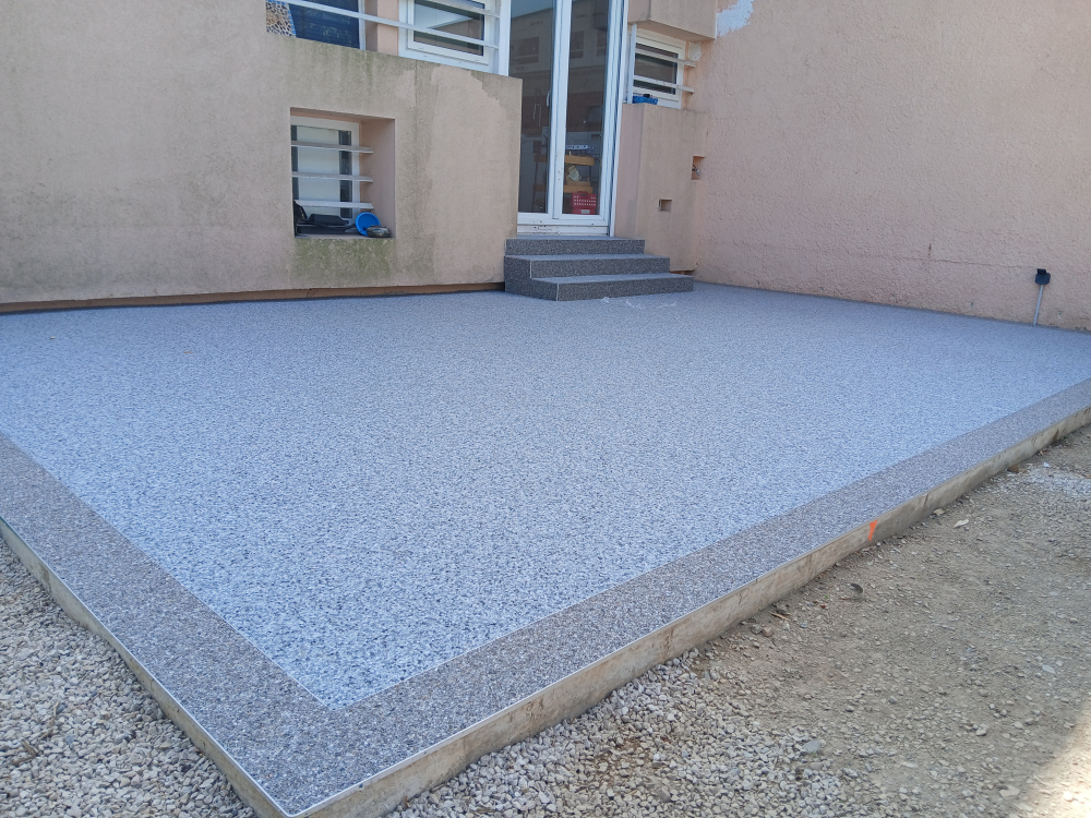 FW.RESINE a réalisé la pose d’un revêtement de sol sans raccords en granulat de marbre sur une terrasse à Montpellier-34