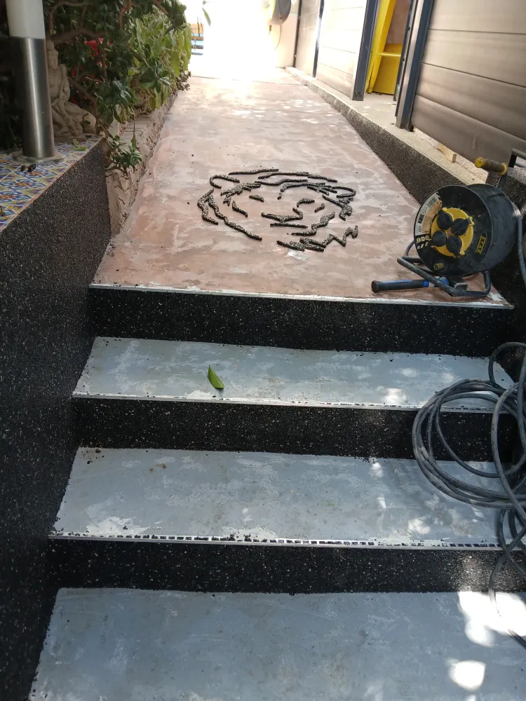 Votre entreprise de revêtement de sol en résine FW.RESINE a réalisé la pose d’un tapis de pierre à Marseille (13013) en résine autour d'une maison en procédant au ponçage, dépoussiérage, la réparation des fissures visible sur le support, la pose de profilés en aluminium en finissant par l'installation d’un tapis de pierre antidérapant de couleur gris et contre-marches couleur noir.