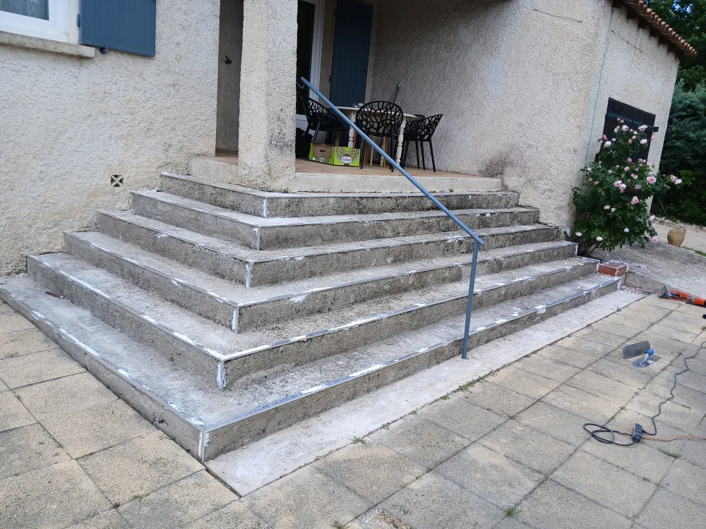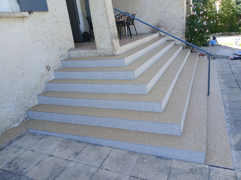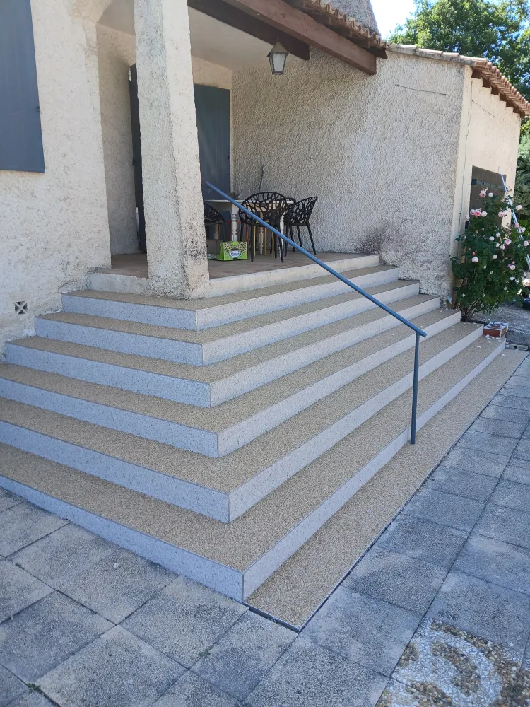 FW.RESINE a effectué la pose d’une moquette de pierre sur un escalier extérieur à Aix-en provence.